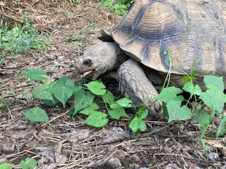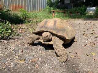 世界で3番目に大きくなるリクガメといわれるパンちゃんは、ゆったりとした歩みと野菜をもぐもぐ食べる姿で、従業員はもちろん、お客様にも癒しを届けています。いまでは弊社の“マスコット”として、来社された方々との会話を和やかにしてくれる存在です。